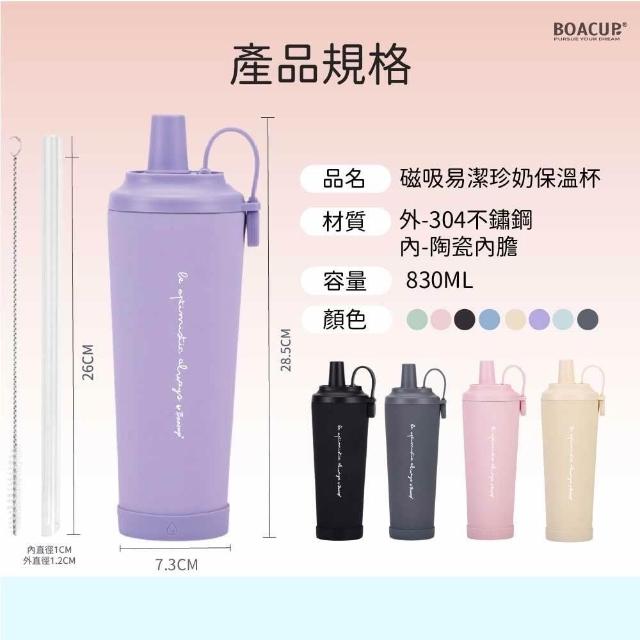 BOACUP1杯/2杯 磁吸蓋陶瓷杯/吸管保溫杯 830ML TRITAN吸管 (買一送一 磁吸杯蓋 304不鏽鋼 ) 交換禮物