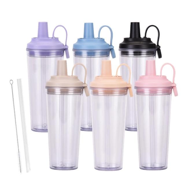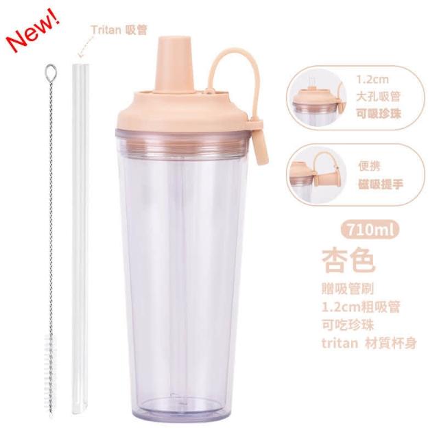 贈Tritan粗吸管🔥磁吸提手+大容量透明吸管杯 710ML(保溫瓶 運動水瓶 贈吸管刷+吸管) 交換禮物