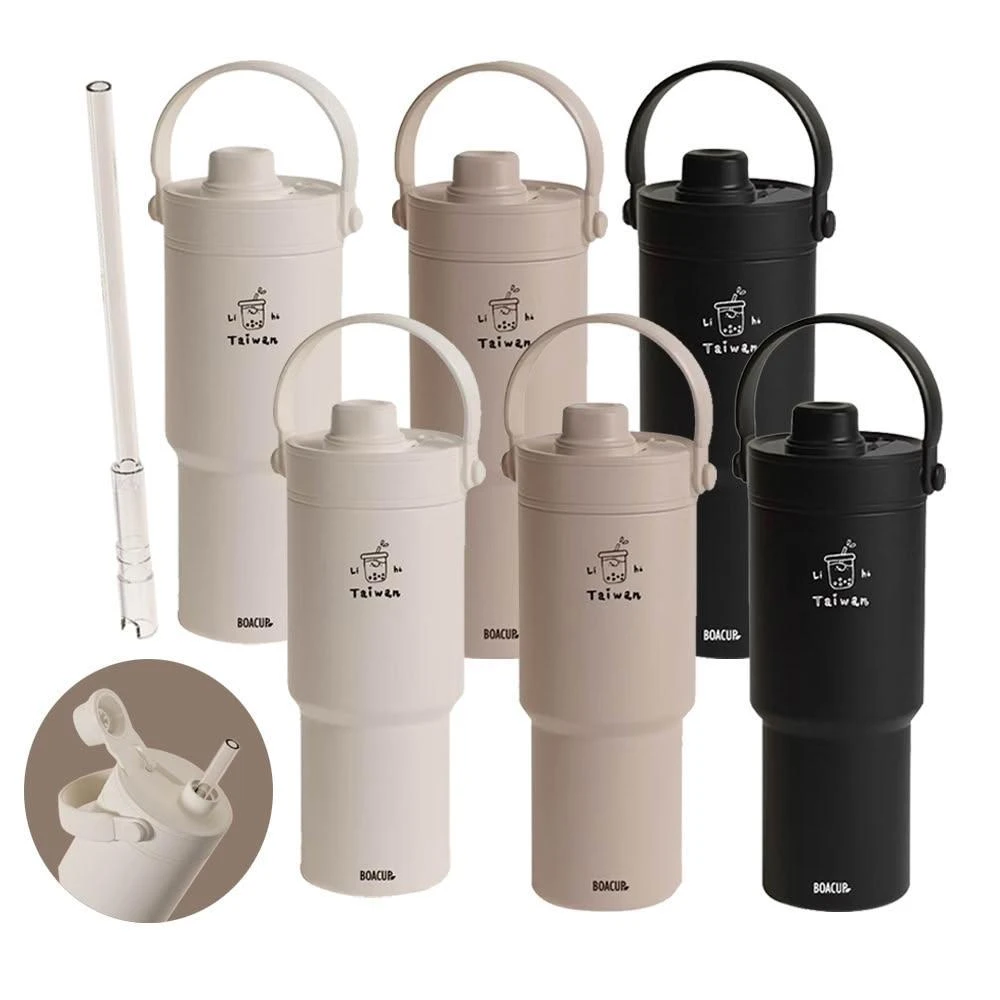 BOACUP買一送一陶瓷塗層真空保溫 隨行杯 吃貨杯735ML 贈彈跳吸管 珍奶台灣原創 保溫杯 環保杯(隨行杯/保溫杯瓶/保冰杯)