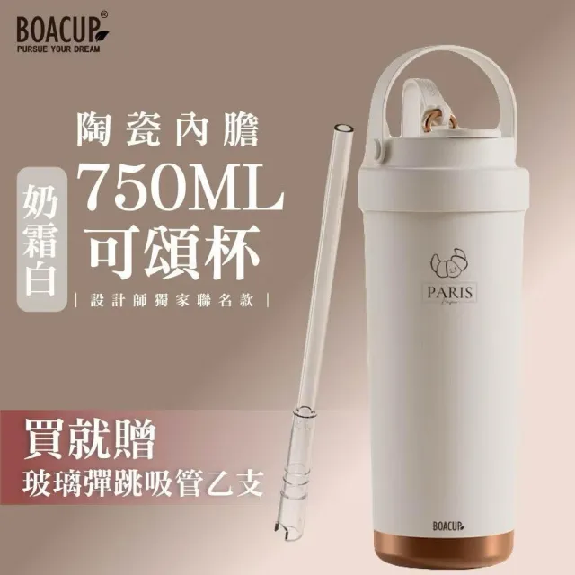 BOACUP買一送一🔥陶瓷三飲保溫杯750ml 陶瓷內膽可頌杯 贈送吸管 ( 超商大美OK 吸管杯 隨行杯 咖啡杯) 交換禮物