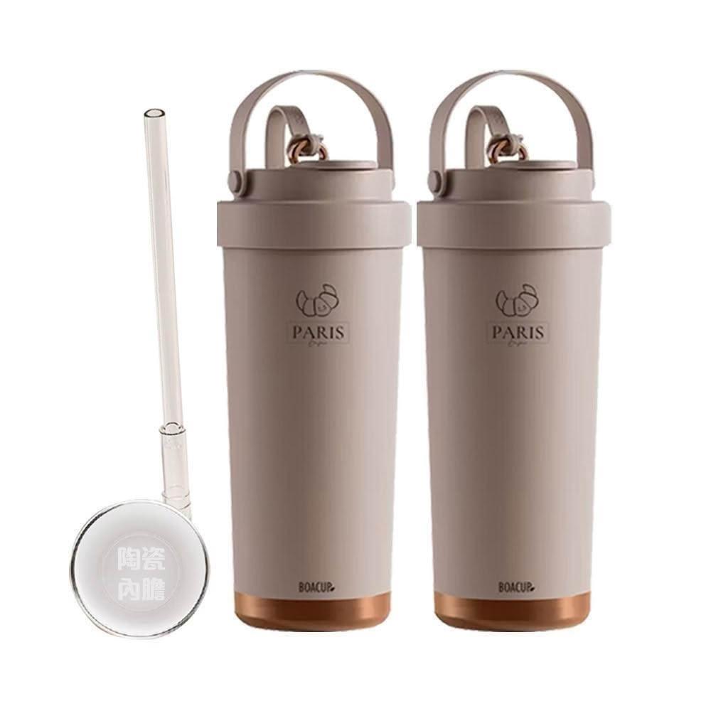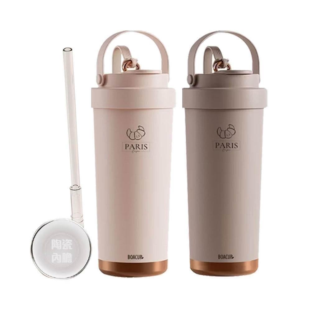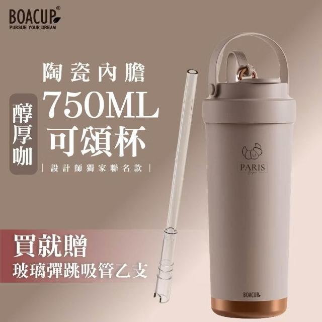 BOACUP買一送一🔥陶瓷三飲保溫保冰杯750ml 陶瓷內膽可頌杯 贈送吸管 ( 超商大美OK 吸管杯 隨行杯 咖啡杯) 交換禮物