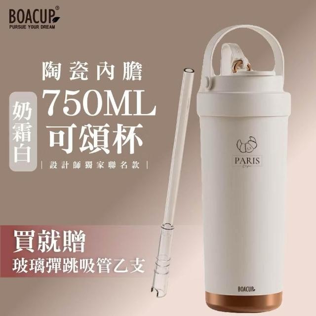 BOACUP買一送一🔥陶瓷三飲保溫保冰杯750ml 陶瓷內膽可頌杯 贈送吸管 ( 超商大美OK 吸管杯 隨行杯 咖啡杯) 交換禮物