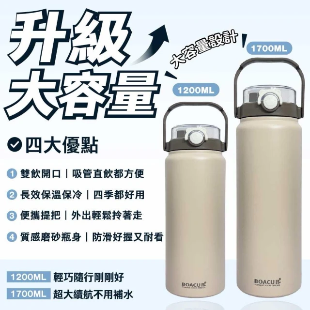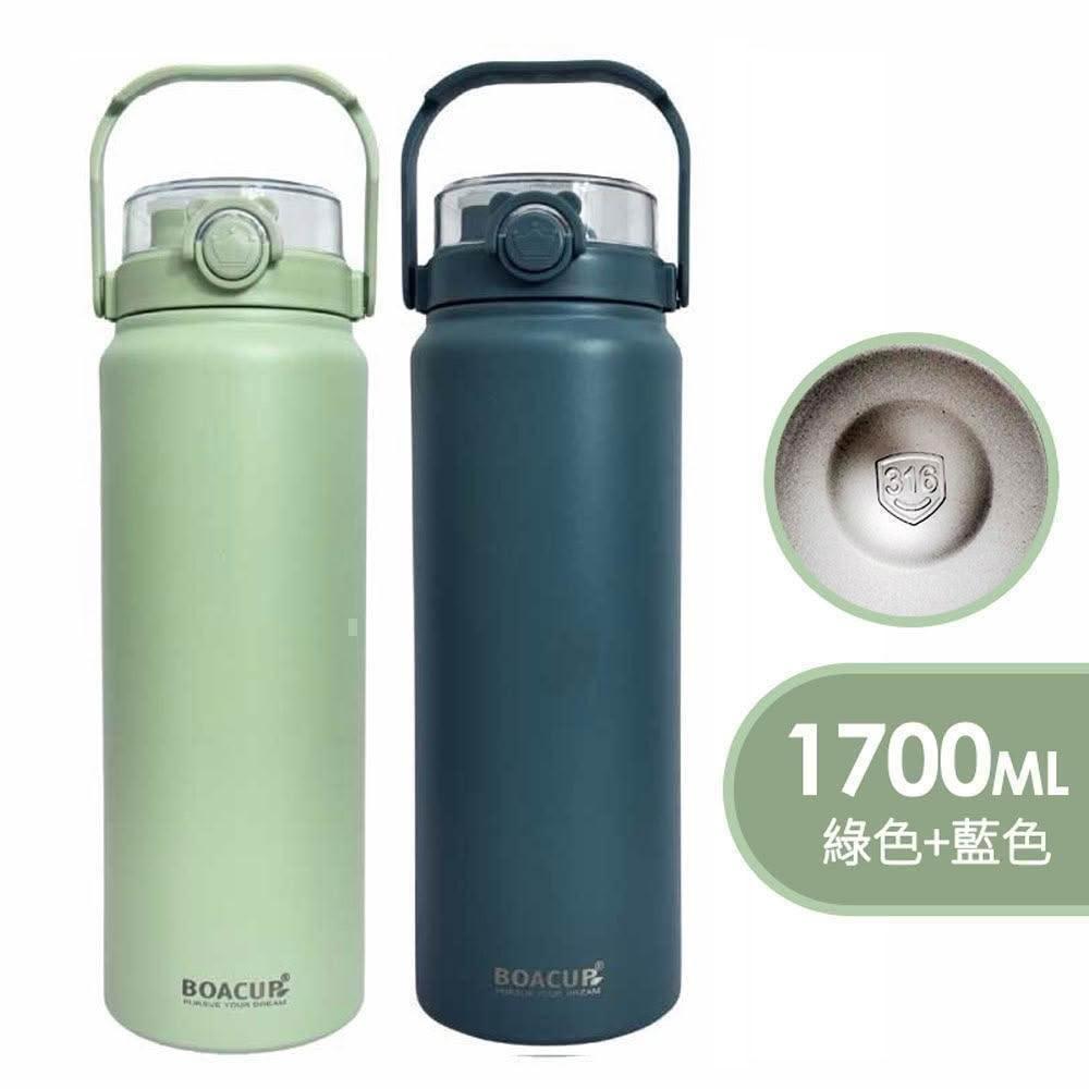 BOACUP買一送一316雙飲保溫杯1700ML大容量運動水壺 (316不鏽鋼保溫瓶 保溫壺 保溫杯 不銹鋼) 交換禮物