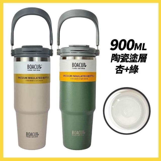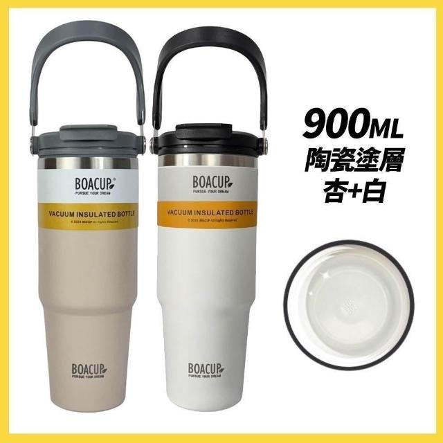 BOACUPmomo獨家 1+1 雙飲手提陶瓷900ML冰壩杯 買一送一 台灣SGS檢驗 (手提保溫杯 304不鏽鋼 冰霸杯 隨行杯