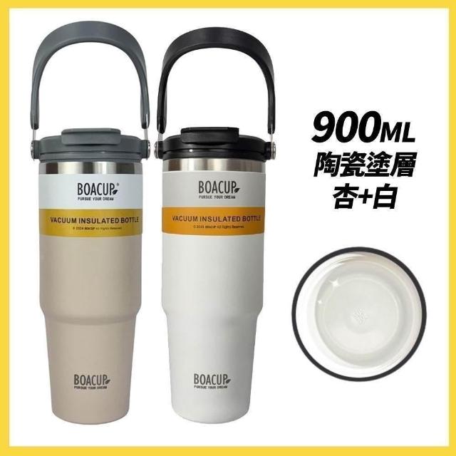 BOACUP【買一送一】SGS檢驗合格 陶瓷手提冰霸杯 900ml (304不鏽鋼/磁吸蓋/珍奶杯/保溫隨行杯/交換禮物)