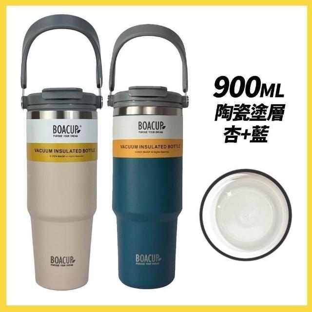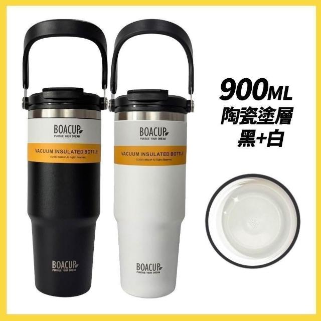 BOACUP【買一送一】SGS檢驗合格 陶瓷手提冰霸杯 900ml (304不鏽鋼/磁吸蓋/珍奶杯/保溫隨行杯/交換禮物)