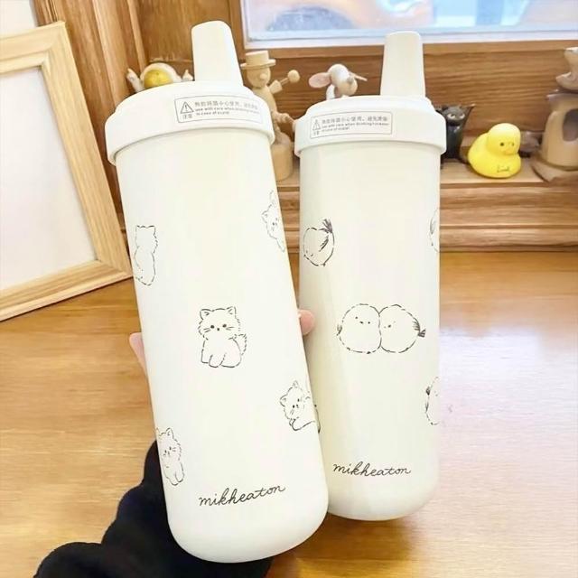 BOACUP買1送1 720ml小貓珍奶吸管杯 ( 304不鏽鋼 保溫瓶 大口徑吸管杯 保溫壺 不銹鋼 隨行杯) 交換禮物