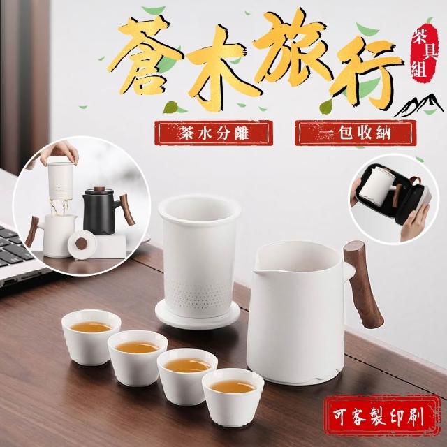 蒼木把手旅行茶組 一壺四杯 贈收納包 (快客杯 簡約戶外 露營 喝茶裝備 旅行茶具 泡茶組 茶壺組) 交換禮物