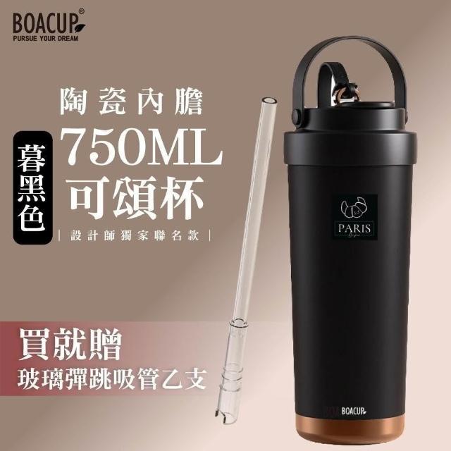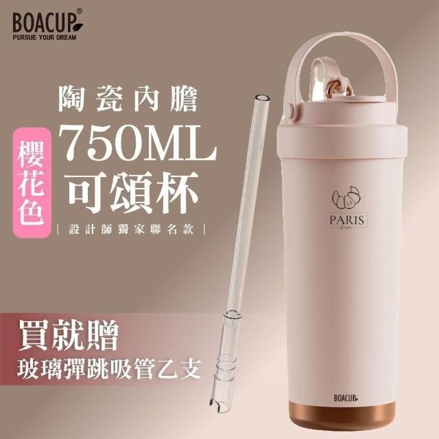 BOACUP法式可頌杯 陶瓷內膽 750ml 贈彈跳細吸管 可頌台灣原創插畫 ( 保冰保溫杯 隨行杯 吸管杯 ) 超商咖啡