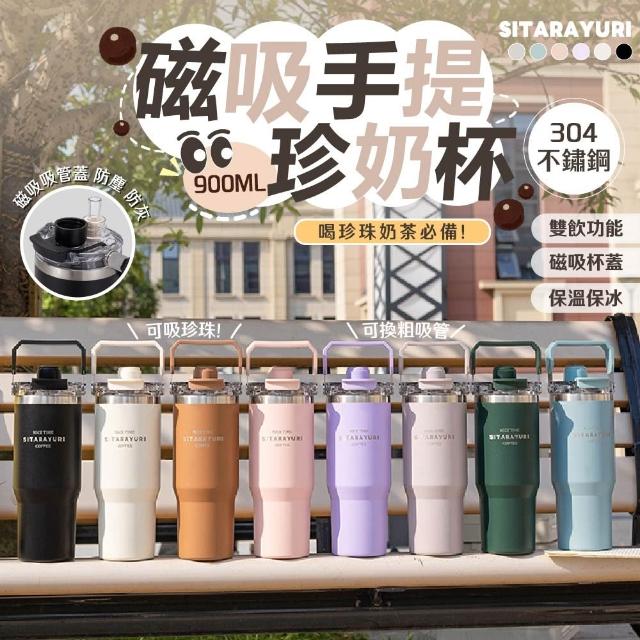 BOACUP買一送一 900ML三飲防塵磁吸蓋提手保溫杯 ( 304不鏽鋼 咖啡杯 保冰保溫杯 冰霸杯 ) 交換禮物