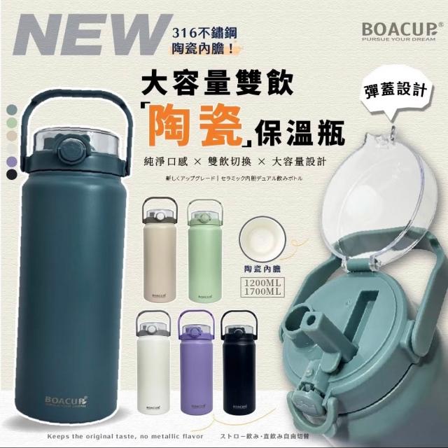 BOACUP極新品★ 買一送一316陶瓷雙飲保溫杯1700ml ( 保溫瓶 環保杯 運動水壺 保冰杯 冰壩杯 冰霸杯 )