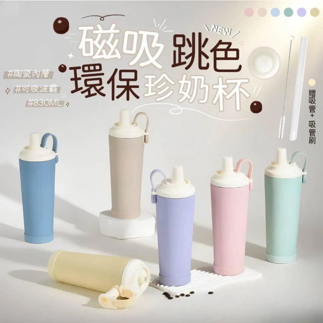 BOACUP磁吸珍奶杯 陶瓷內膽保溫杯 保溫杯 贈吸管刷保護套 陶瓷保溫杯 冰壩杯 珍奶杯 吸管杯 BOACUP