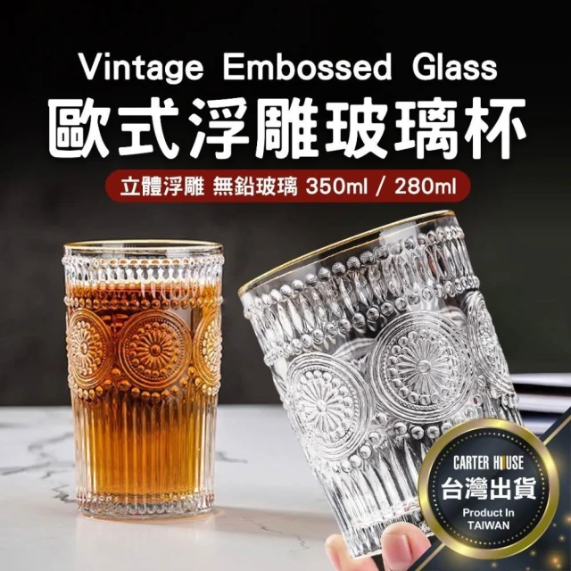 卡特屋歐式復古玻璃杯 歐式玻璃杯 復古水杯 浮雕玻璃杯 復古玻璃杯 歐式水杯 水杯 玻璃杯 造型杯 金邊玻璃杯