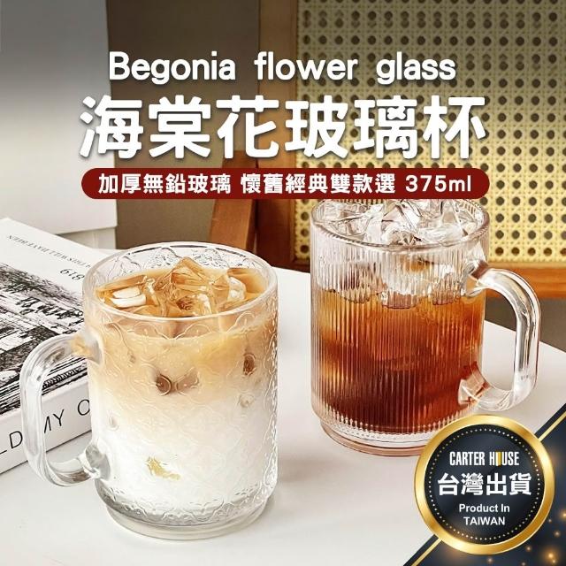 卡特屋海棠花玻璃杯 玻璃杯 咖啡杯 奶茶杯 水杯 杯子 浮雕早餐杯 耐熱玻璃杯 麥片杯 早餐杯 浮雕杯