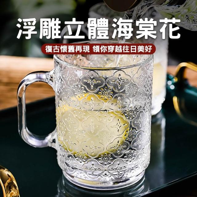 卡特屋海棠花玻璃杯 玻璃杯 咖啡杯 奶茶杯 水杯 杯子 浮雕早餐杯 耐熱玻璃杯 麥片杯 早餐杯 浮雕杯