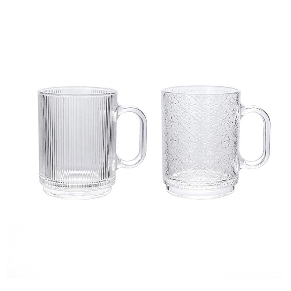 卡特屋海棠花玻璃杯 玻璃杯 咖啡杯 奶茶杯 水杯 杯子 浮雕早餐杯 耐熱玻璃杯 麥片杯 早餐杯 浮雕杯