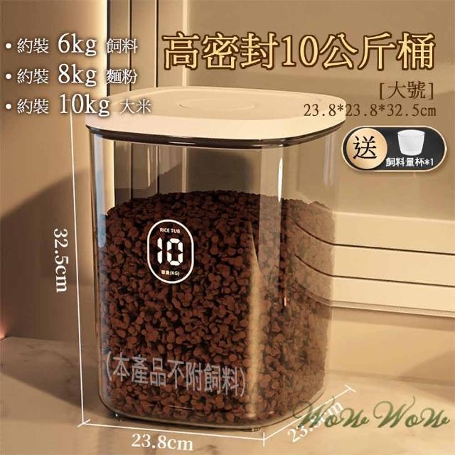 毛皇上10KG 按壓密封桶白色10KG/大容量/防潮密封飼料桶/儲糧桶/一鍵微真空/附量杯/密封罐/飼料桶/寵物儲糧桶