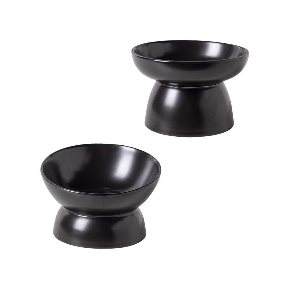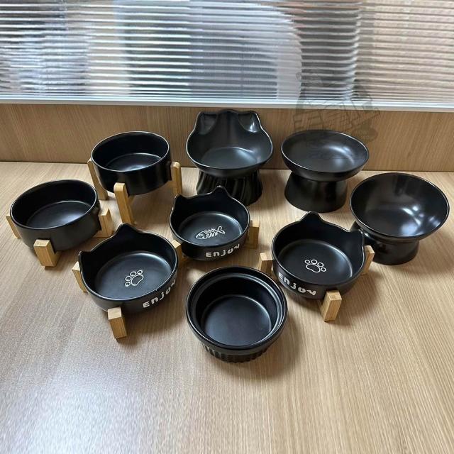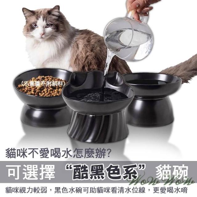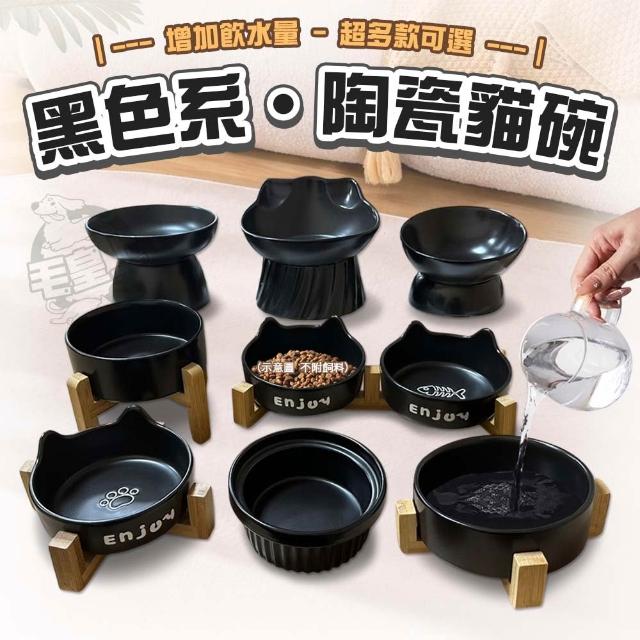 毛皇上❤寵物用品 黑色系陶瓷貓碗 酷黑高腳陶瓷碗 陶瓷碗 喝水碗 餵食碗 貓碗 寵物碗