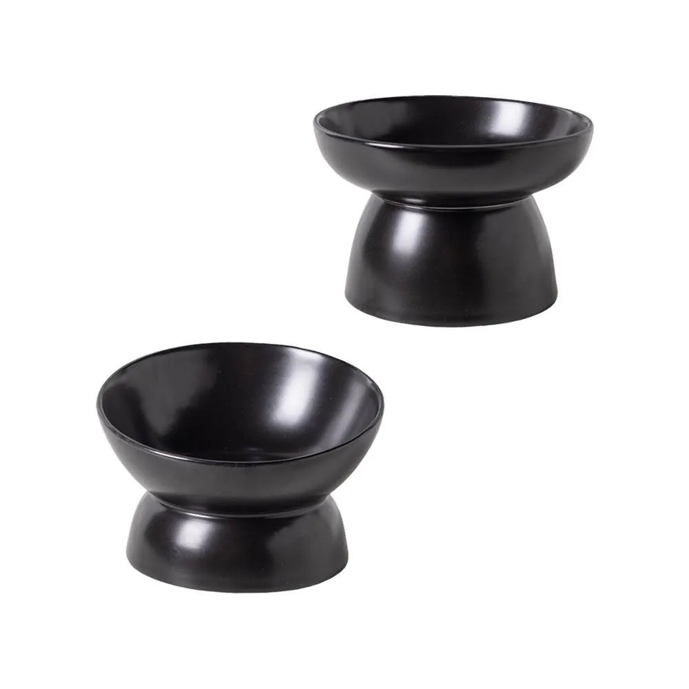 毛皇上毛皇上❤寵物用品 黑色系陶瓷貓碗 酷黑高腳陶瓷碗 陶瓷碗 喝水碗 餵食碗 貓碗 寵物碗