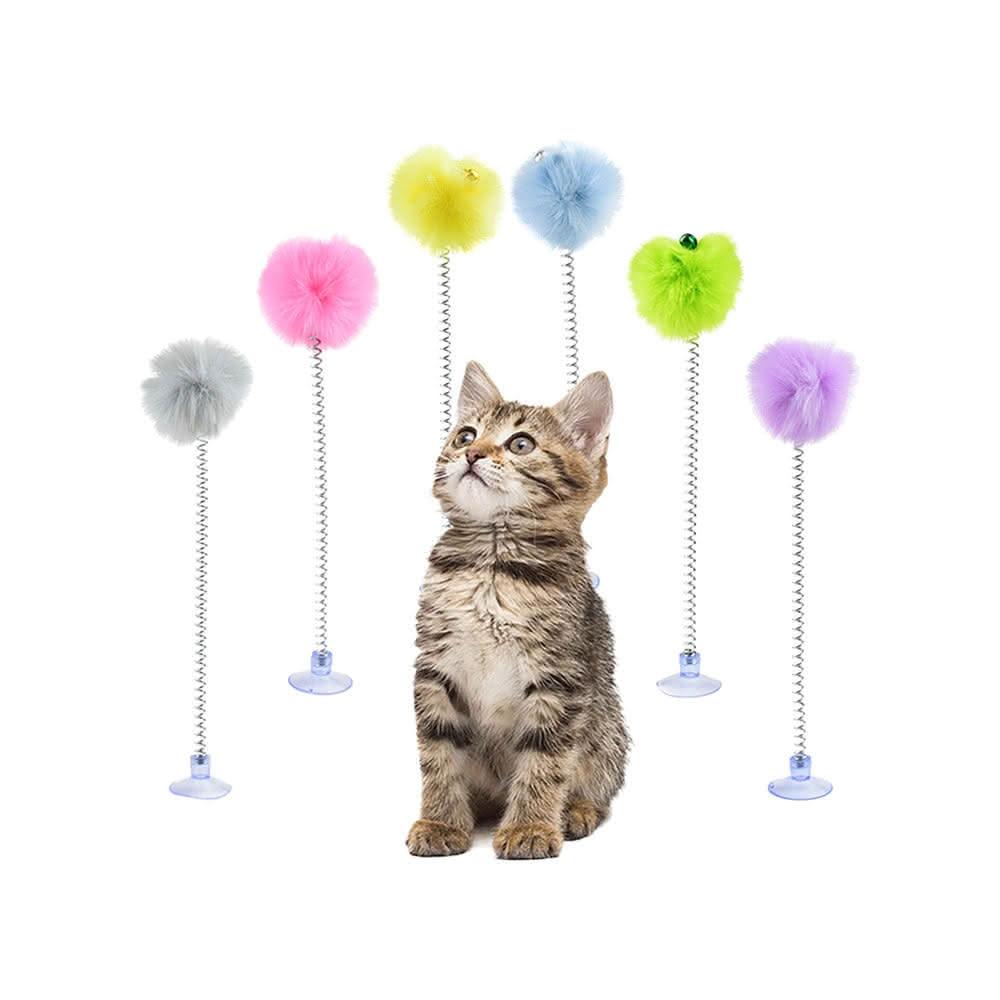 毛皇上吸盤彈簧毛球逗貓棒 兔毛吸盤逗貓棒 逗貓吸盤 鈴鐺逗貓棒 逗貓棒 吸盤彈力 寵物玩具