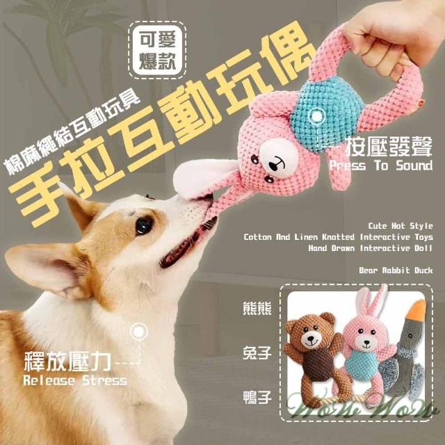 毛皇上棉麻繩結互動玩具手拉互動玩具/手拉棉繩/菠蘿絨/棉麻布/發聲玩具/貓狗玩具