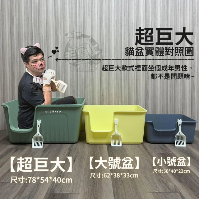 毛皇上超巨大貓砂盆 巨無霸款 超巨大蓋子 送貓砂鏟 一體式 半封閉 防噴濺 貓砂盆 貓廁 貓尿盆 寵物用品