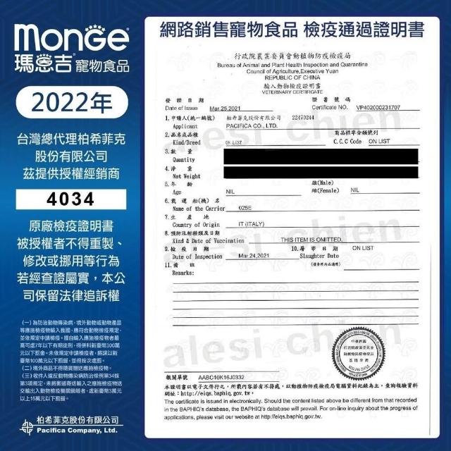 Monge 瑪恩吉倍愛滿滿(蔬果) 主食犬餐盒 100g*32入/箱