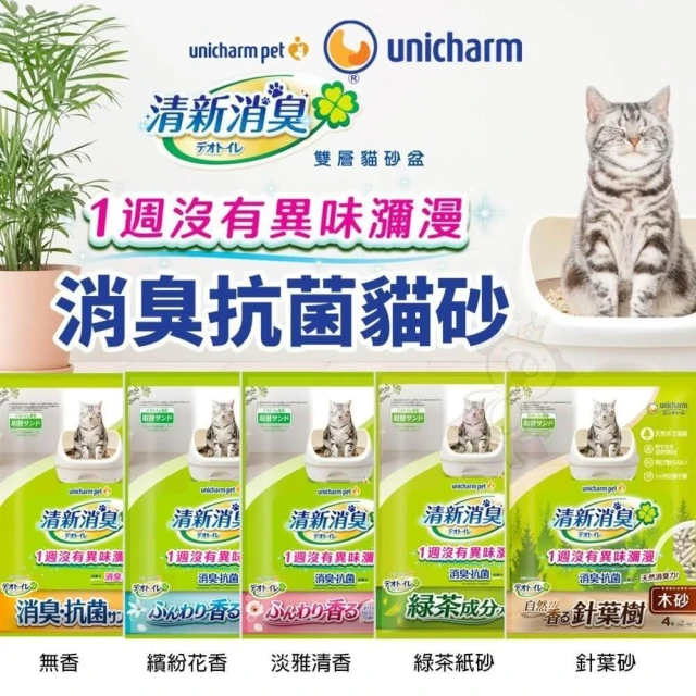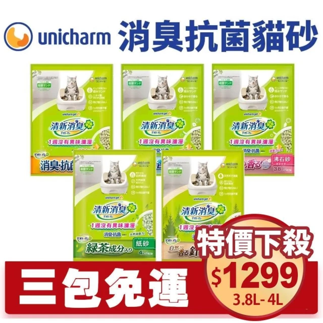 Unicharm Pet 清新消臭抗菌貓砂 3.8L~4L x3包組 免運費 沸石砂/紙砂 /針葉砂/消臭大師