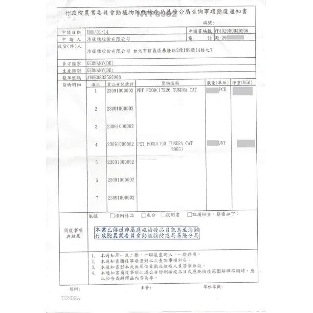 TUNDRA 渴達德國 貓咪主食罐 200g/400g (12罐組)貓主食罐 無穀貓罐 貓罐頭
