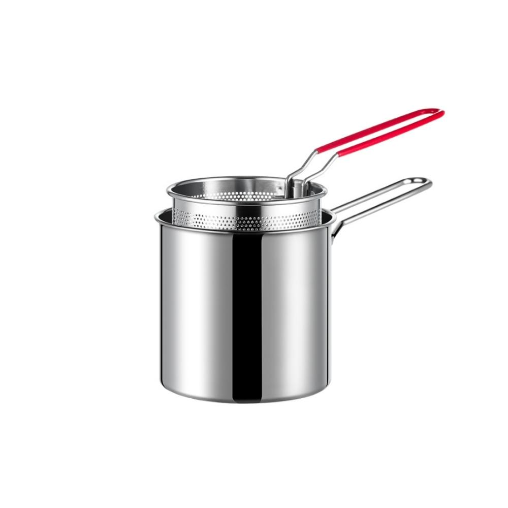 日物販所迷你304不鏽鋼油炸鍋 1入組(油炸鍋 不銹鋼油炸鍋 油炸鍋 304不鏽鋼 家用小炸鍋 小型油炸鍋)