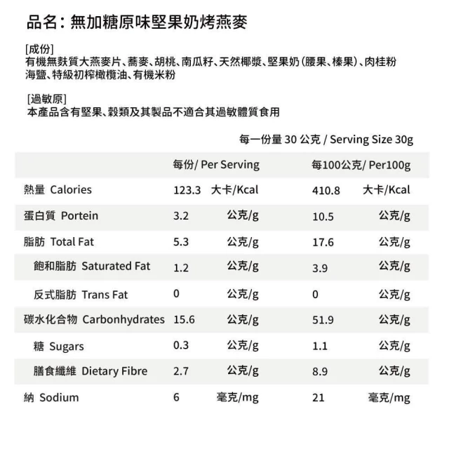 OATGOOD 無加糖原味堅果奶烤燕麥 240g營養師研製.無添加.無麩質.全素可食