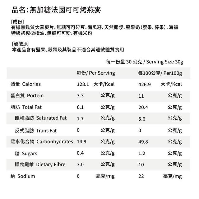 OATGOOD 無加糖法國可可堅果奶烤燕麥 240g營養師研製.無添加.無麩質.全素可食