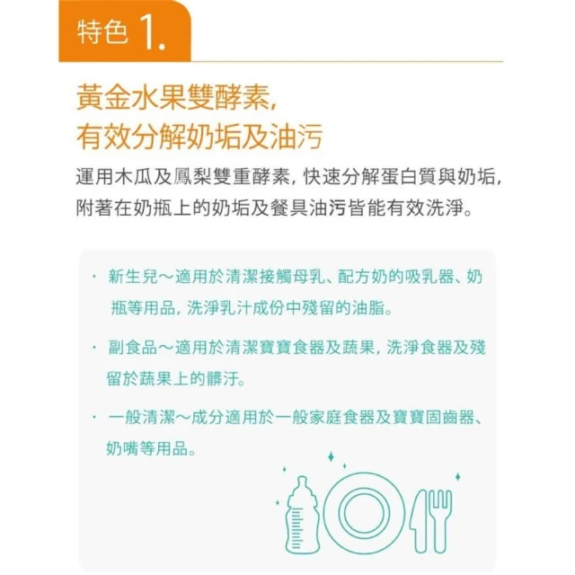 Combi康貝 黃金雙酵奶瓶蔬果洗潔液補充包促銷組 800mlX2(奶瓶蔬果洗潔液/水果酵素配方/寶寶共和國)