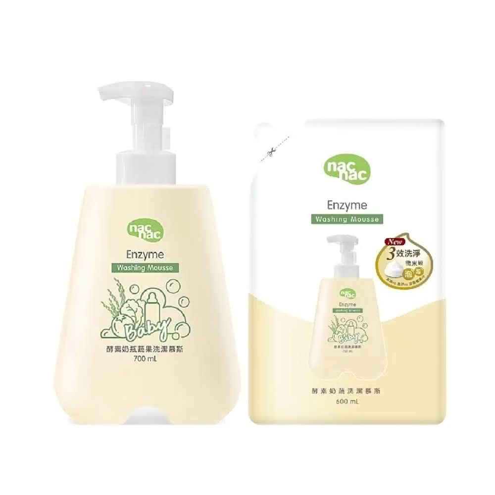 nac nac酵素奶瓶蔬果洗潔慕斯 1瓶+1補 奶瓶清潔/蔬果清潔/食器清潔(寶寶共和國)