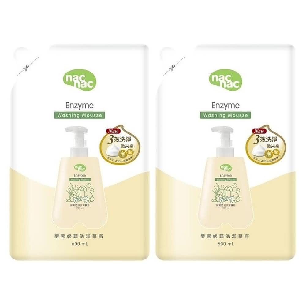 nac nac酵素奶瓶蔬果洗潔慕斯補充包 600mlX2 奶瓶清潔/蔬果清潔/食器清((寶寶共和國))潔