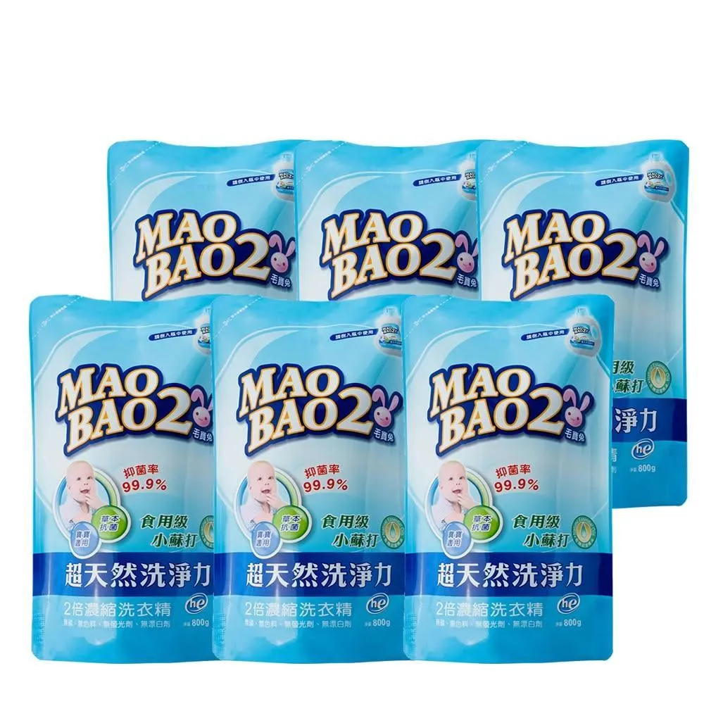 毛寶兔超天然2倍濃縮小蘇打植物抗菌洗衣精 補充包800gX6 草本抗菌洗衣精(寶寶共和國)