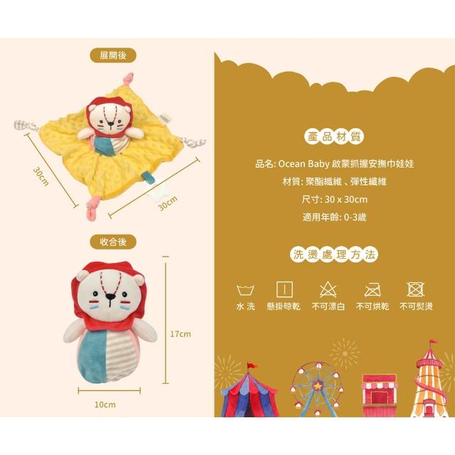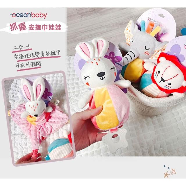 Ocean Baby安撫巾娃娃-七彩粉象/絢彩童獅/童趣柔兔 嬰兒安撫巾 寶寶安撫巾 荳荳安撫巾(寶寶共和國)