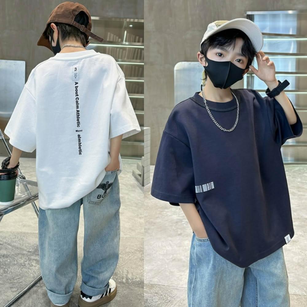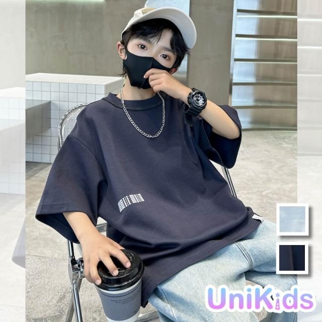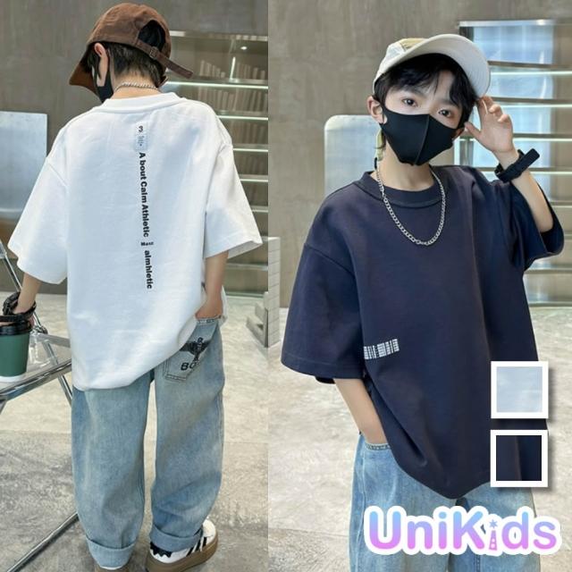 UniKids中大童裝設計感短袖T恤 男大童裝女大童裝 VPYM-2502(白 深灰)