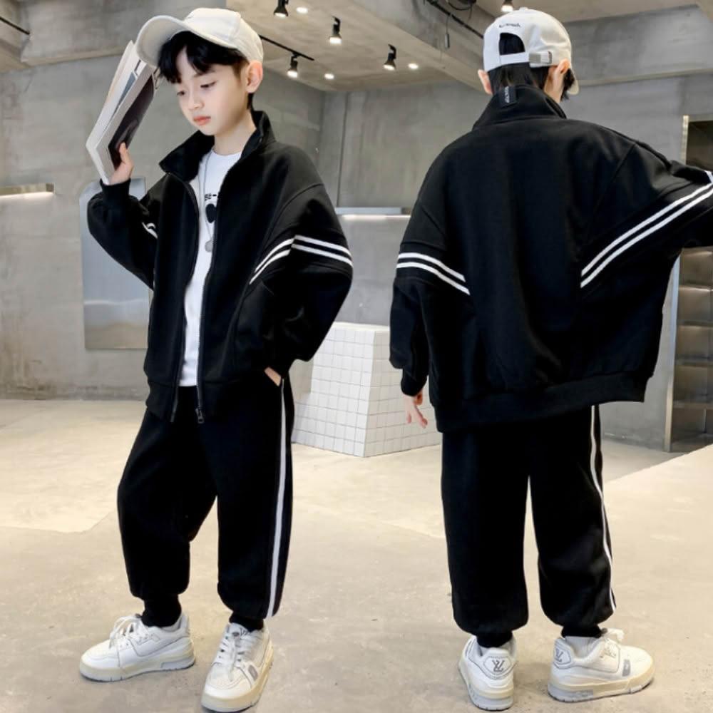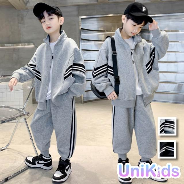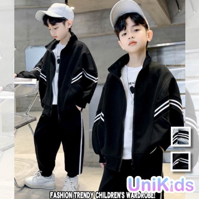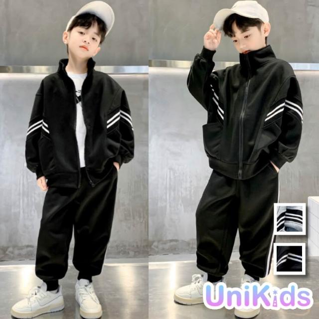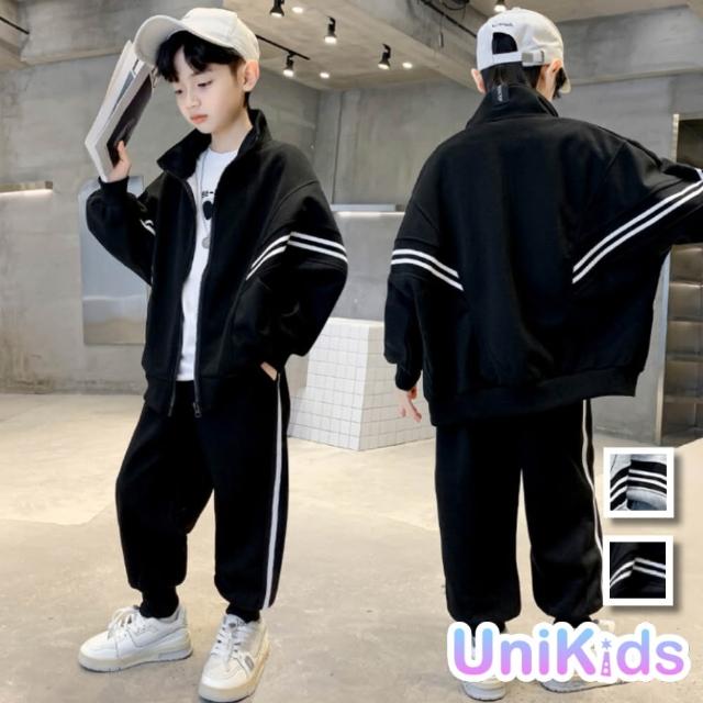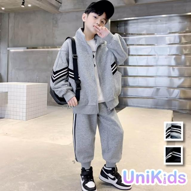 UniKids秋中大童裝2件套裝立領長袖外套束腳運動長褲 男大童裝 VPPPX-TZ22095(黑 灰)