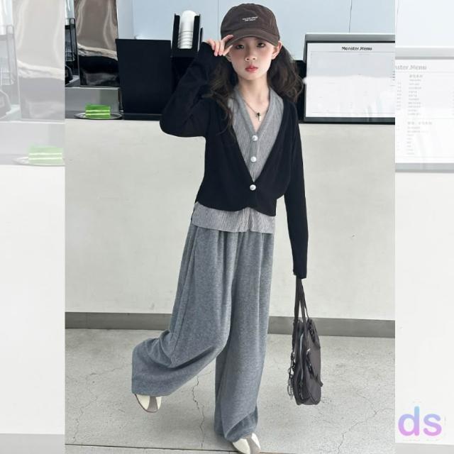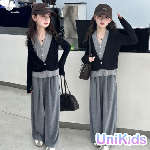 UniKids秋中大童裝2件套裝假兩件長袖T恤休閒長褲 女大童裝 VPQBT2651(套裝)