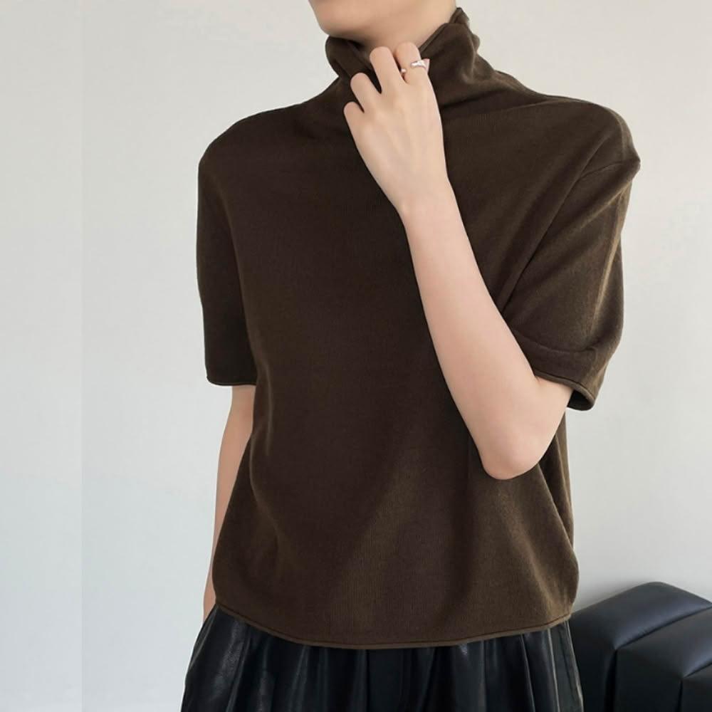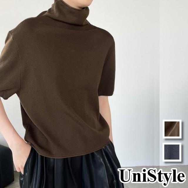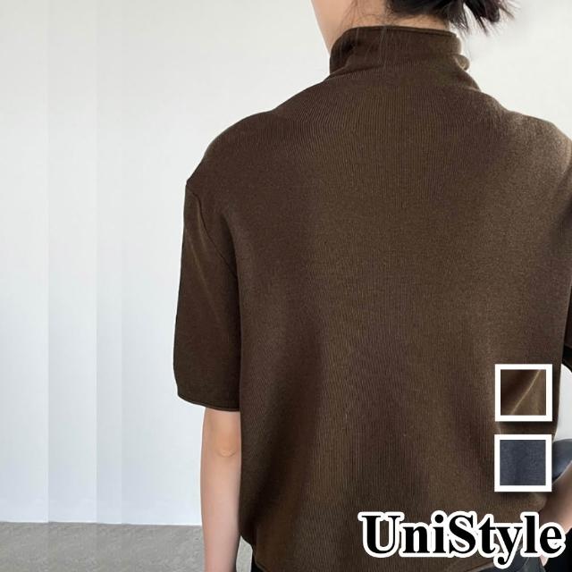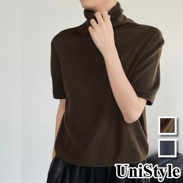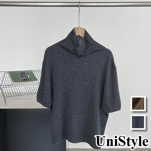 UniStyle秋短袖針織衫 韓版簡約堆堆領高領上衣 女 WTYL921(茶棕 灰)