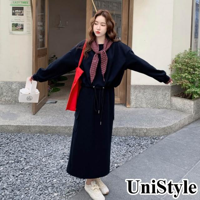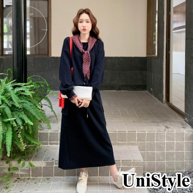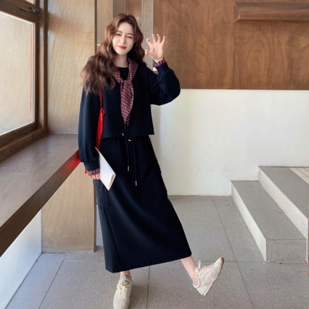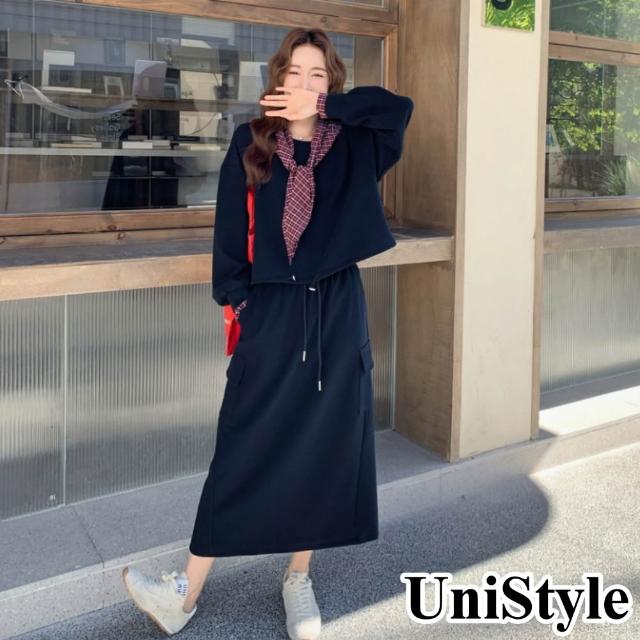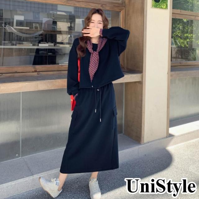 UniStyle秋2件套裝長袖T恤半身裙格紋披肩 韓系歐妮風 女 ZM297-1732(黑)