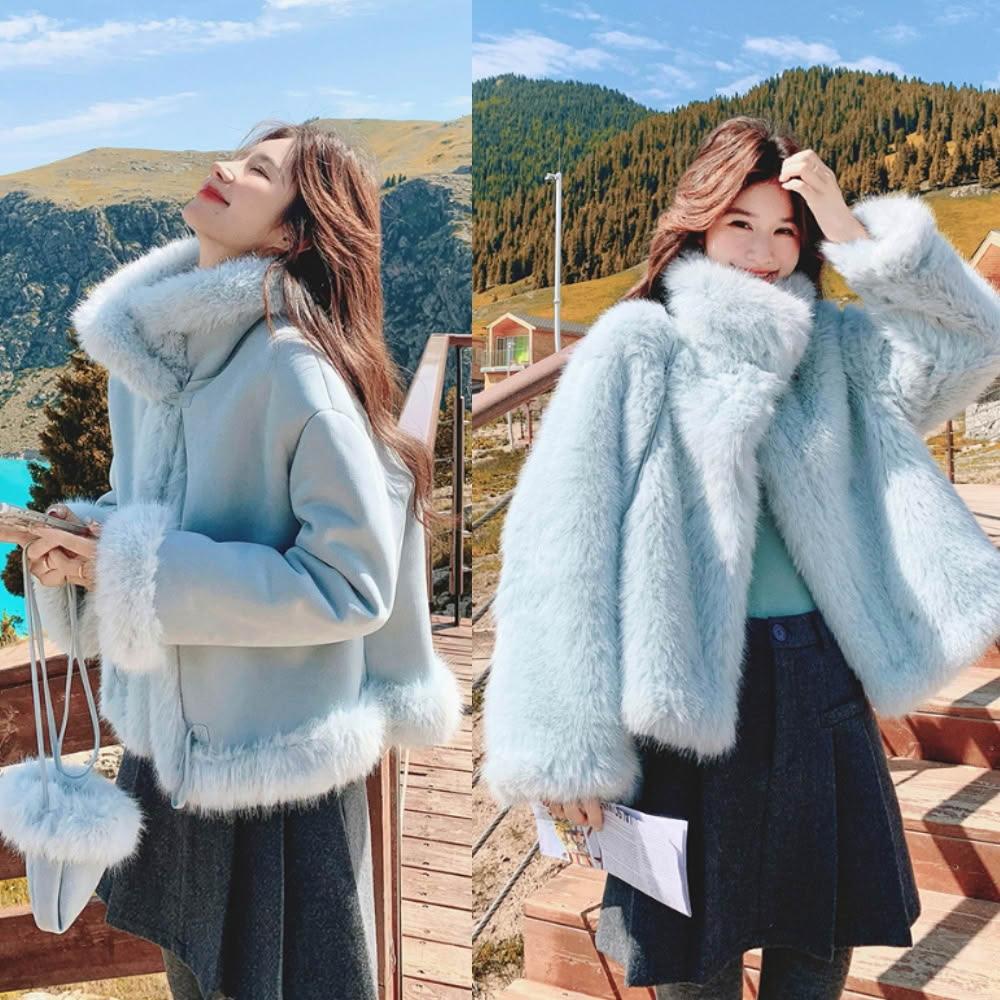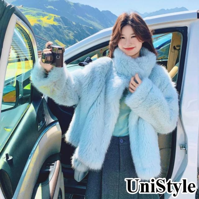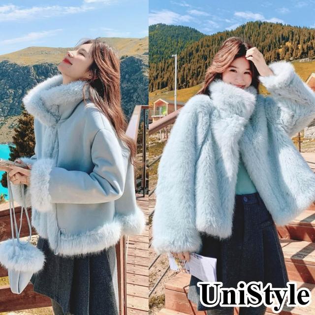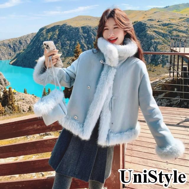 UniStyle秋冬長袖外套 韓系麂皮羊羔毛兩面穿大衣 女 ZMR2C021-3053(藍加厚)