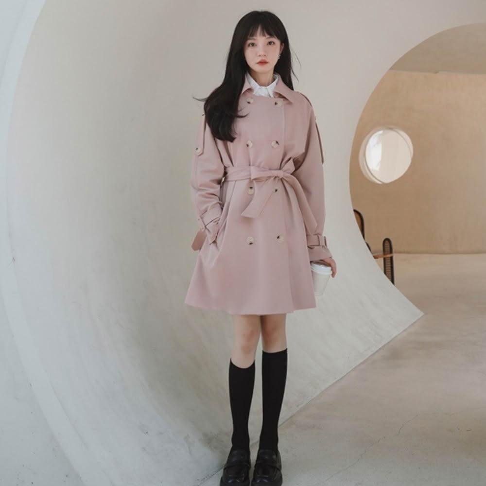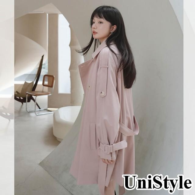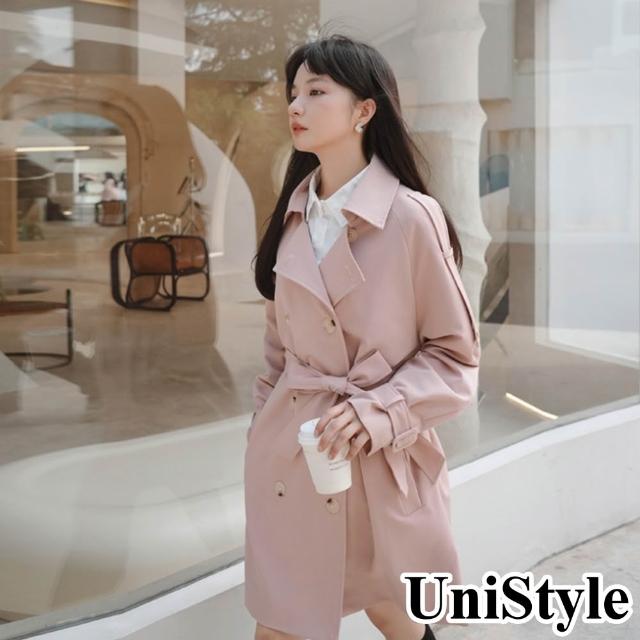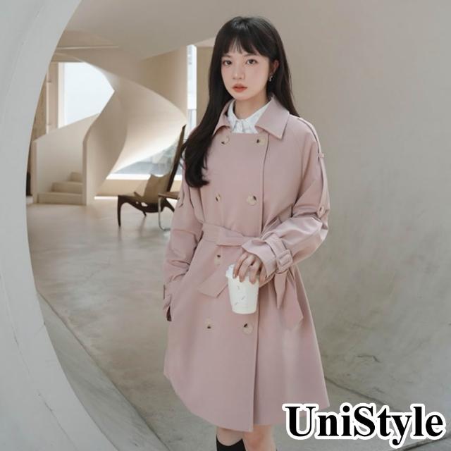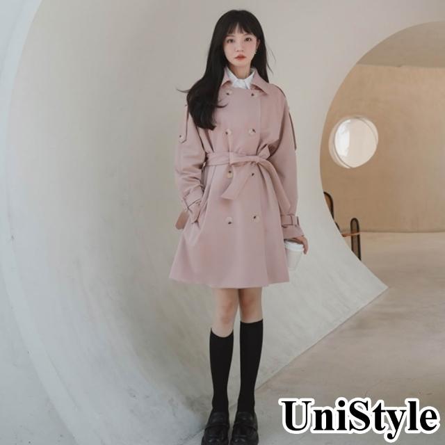 UniStyle秋冬收腰長袖風衣 韓系英倫風大衣外套 女 ZM239-5007(粉)