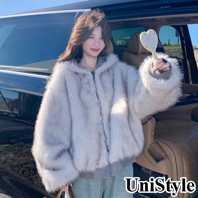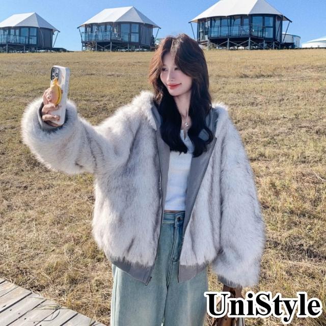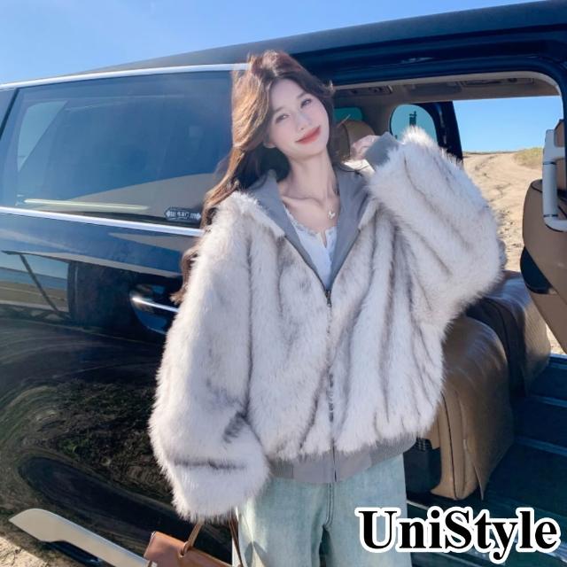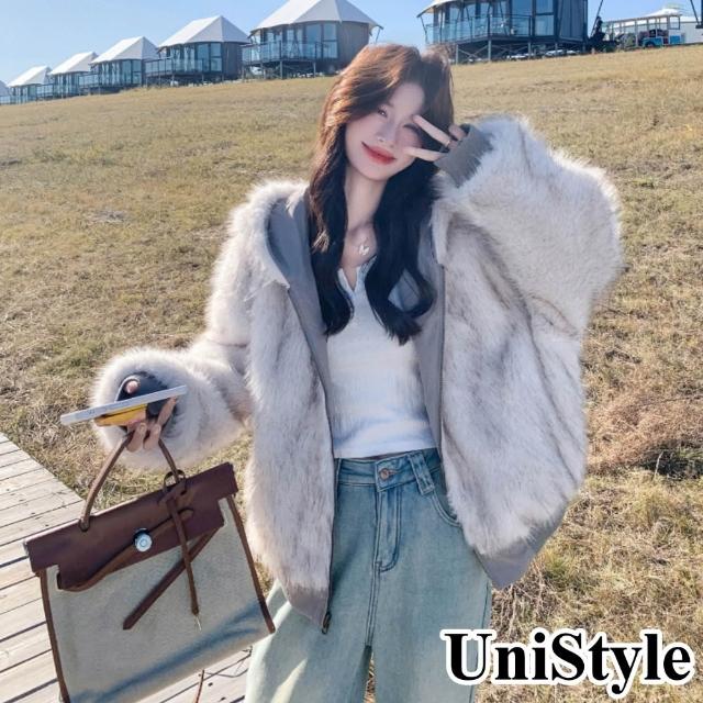 UniStyle秋冬連帽長袖外套 韓系仿皮草羊羔毛夾克 女 ZM139-25160(米灰優質)