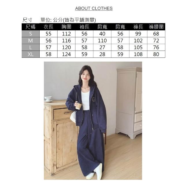 UniStyle秋冬2件套裝麂皮絨長袖連帽外套闊腿休閒長褲 韓系運動風 女 ZMR2C179-627(藏青)
