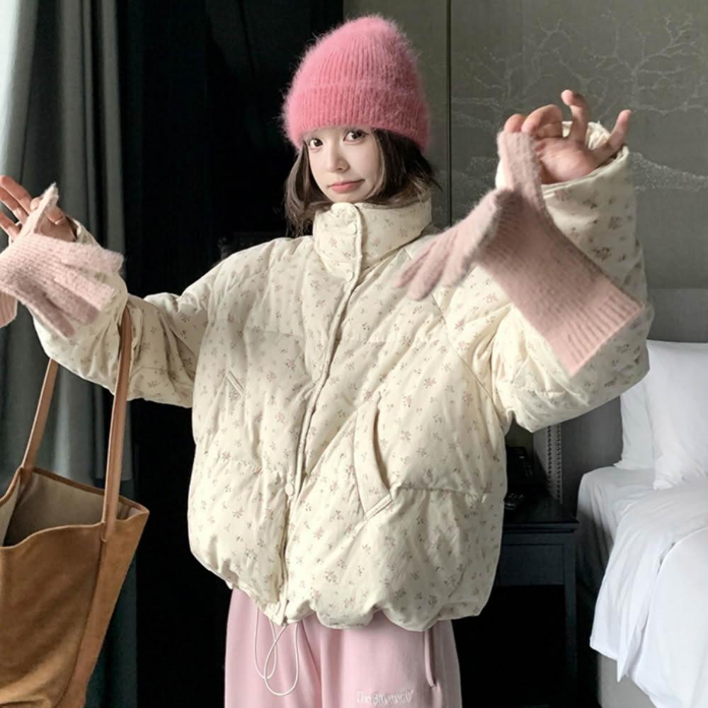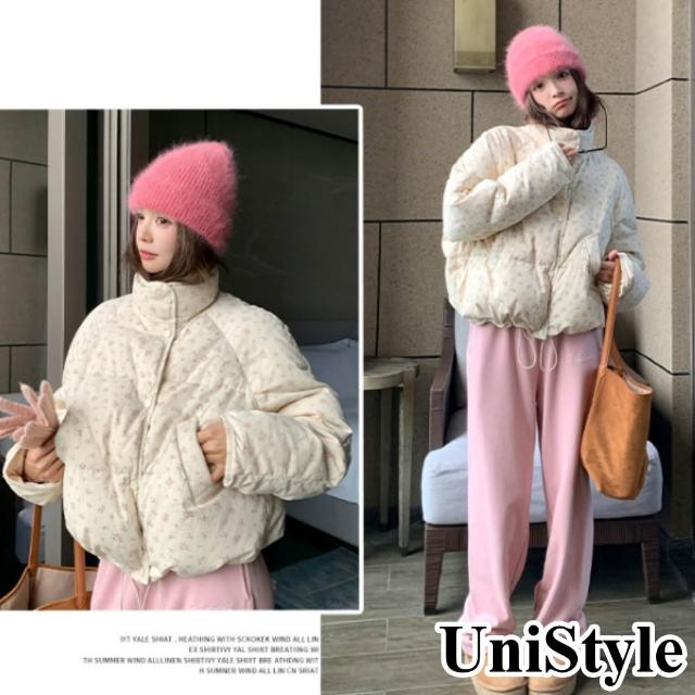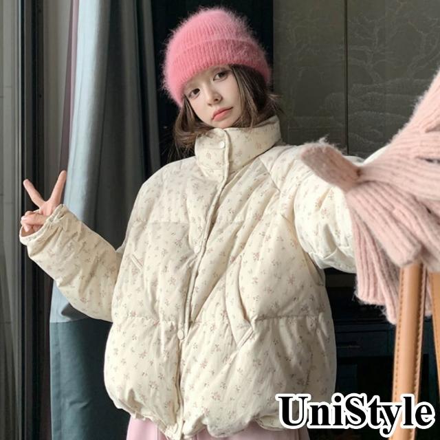 UniStyle秋冬碎花長袖羽絨外套 韓系短版復古浪漫風夾克 女 ZM005-9981(小碎花)
