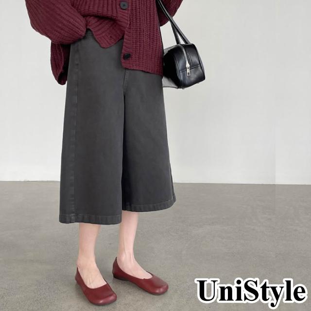 UniStyle春牛仔七分褲 韓版高腰顯瘦直筒闊腿休閒褲 女 WTU88025(碳灰)