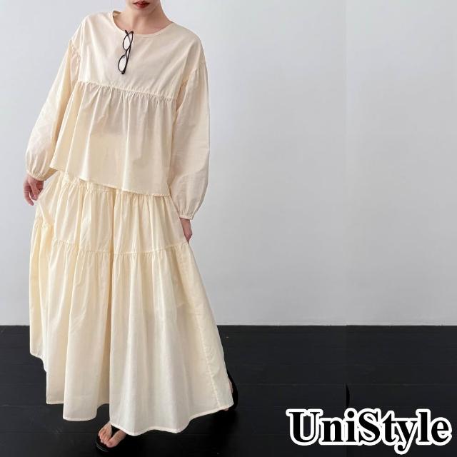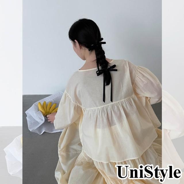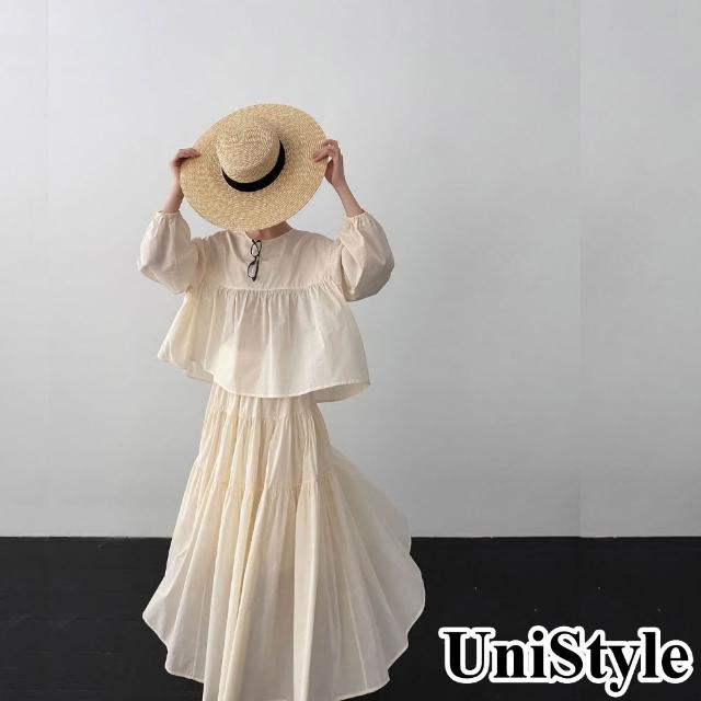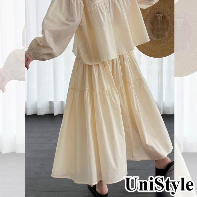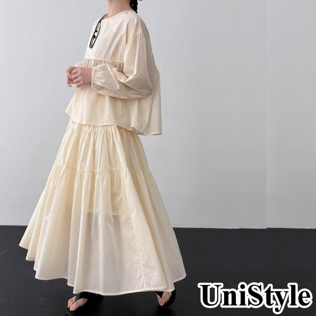 UniStyle春2件套裝長袖娃娃衫大裙擺褶皺半身裙 韓版甜美風 女 UV99019(透明黃)