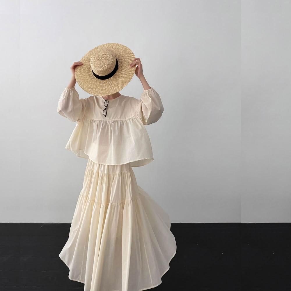 UniStyle春2件套裝長袖娃娃衫大裙擺褶皺半身裙 韓版甜美風 女 UV99019(透明黃)